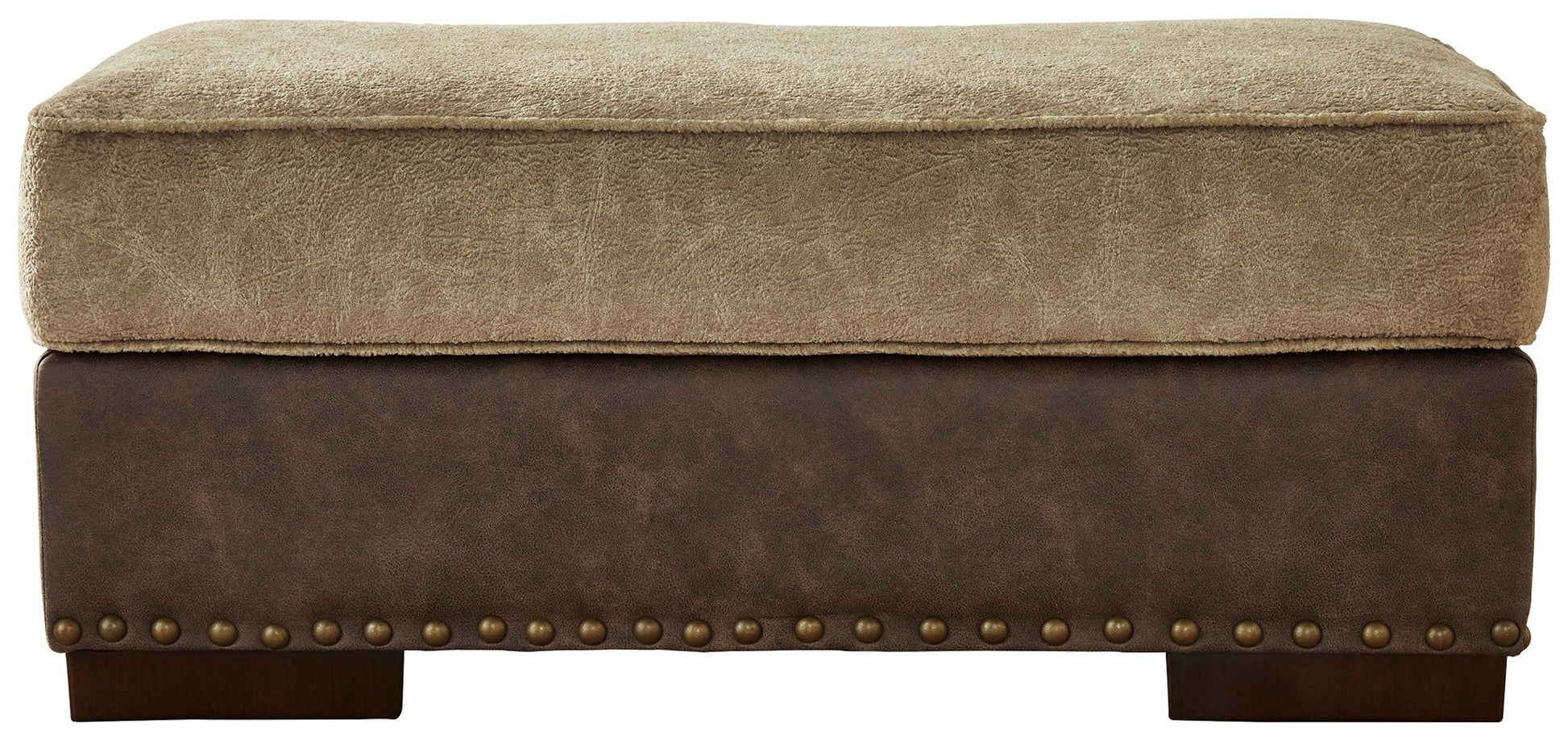 Punctuated by a subtle band of nailhead trim, the cool, contemporary style of this ottoman is perfect for those who love the look of leather. Two textural tones provide twice the style and comfort—and incorporate an added layer of visual interest.