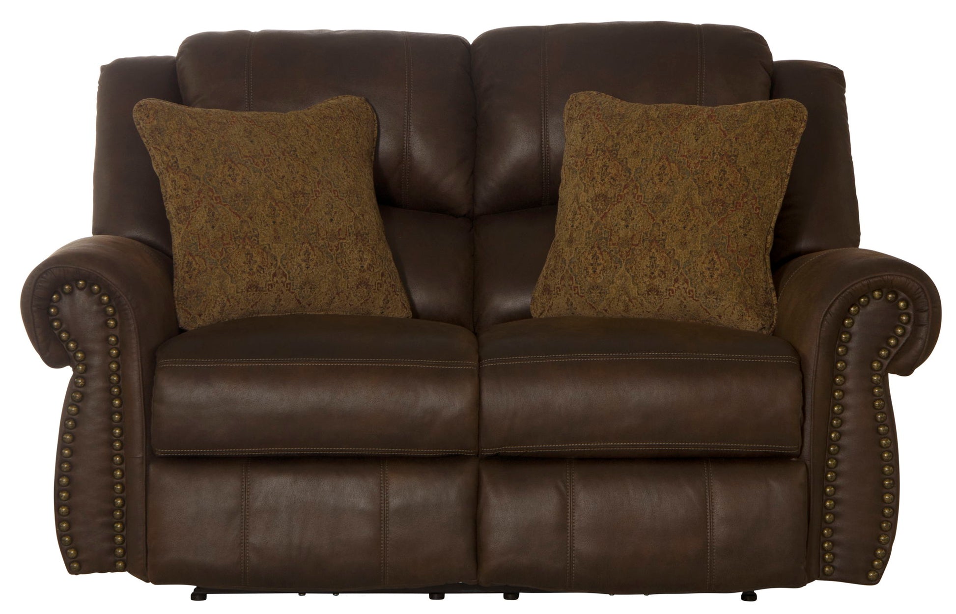 Pickett is a classic Pub Back design with rolled arms and decorative nailhead trim. A soft yet durable faux leather body is accented with decorative tapestry toss pillows.