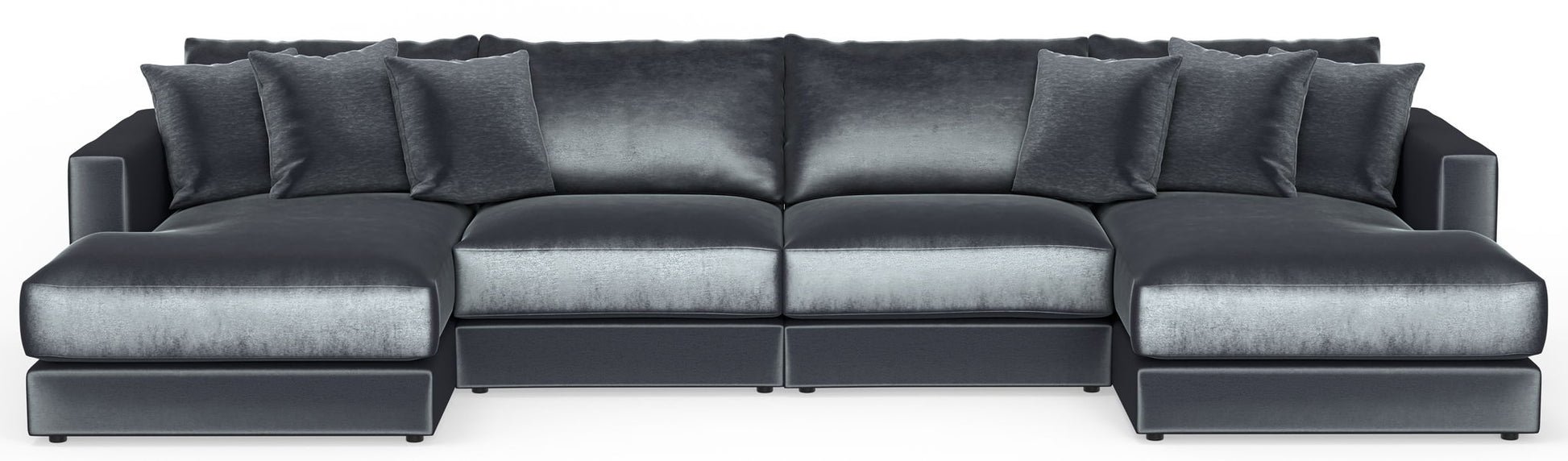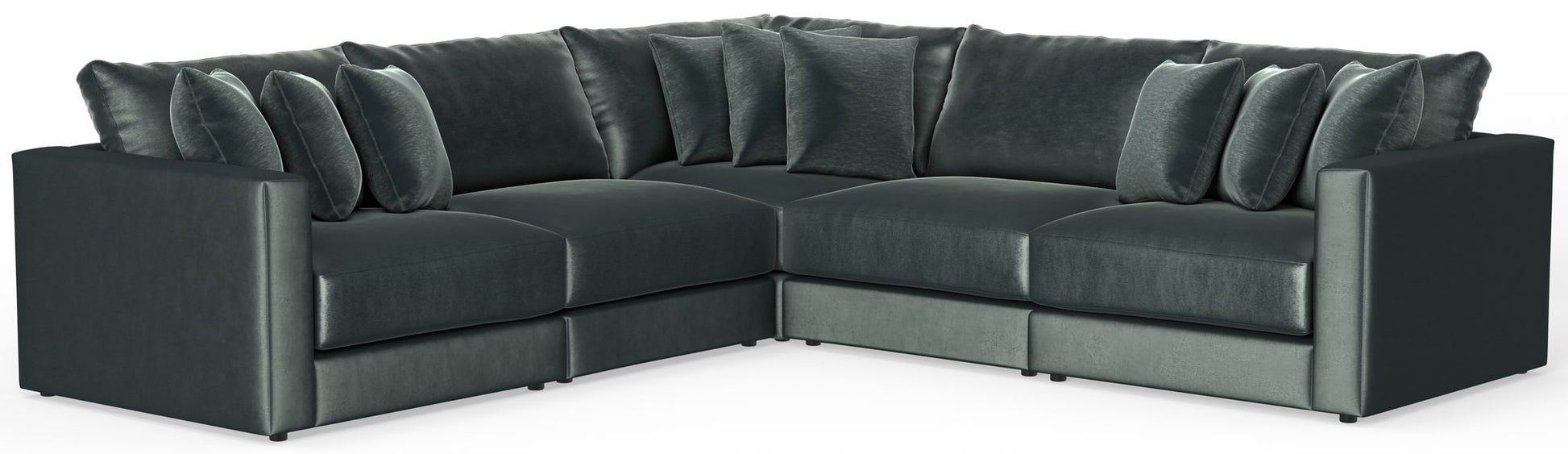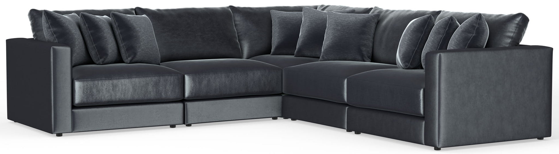 Remington is a track arm design Modular Sectional with loose backs and our Cuddler Cushion for ultimate comfort. Available in your choice of two luxurious velvet fabric colors: Pine or Slate.