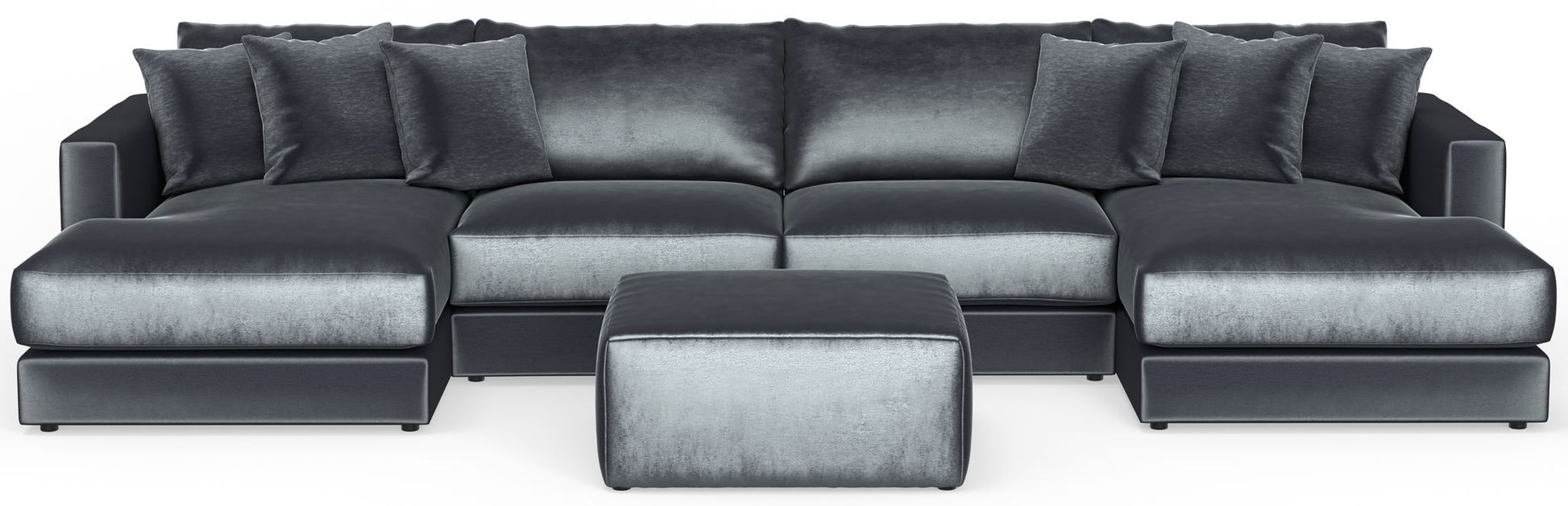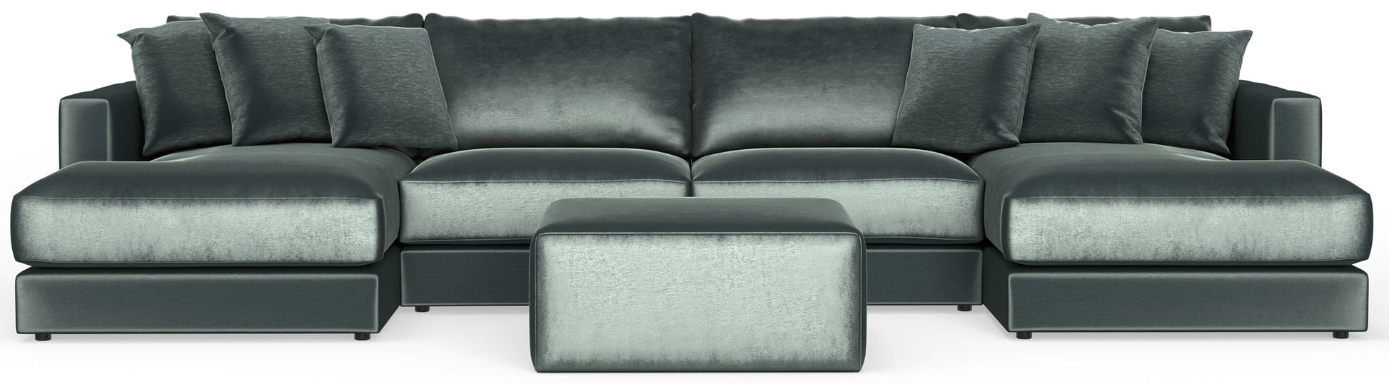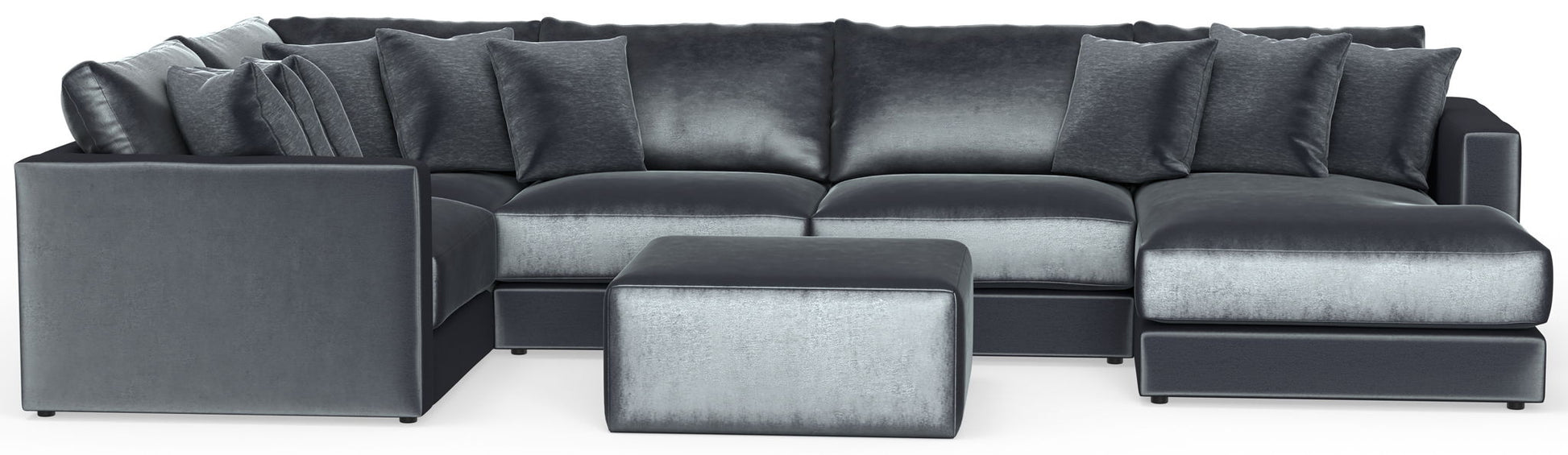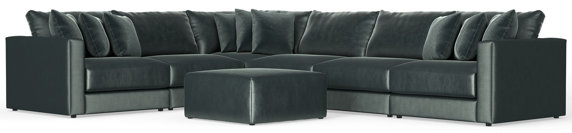Remington is a track arm design Modular Sectional with loose backs and our Cuddler Cushion for ultimate comfort. Available in your choice of two luxurious velvet fabric colors: Pine or Slate.