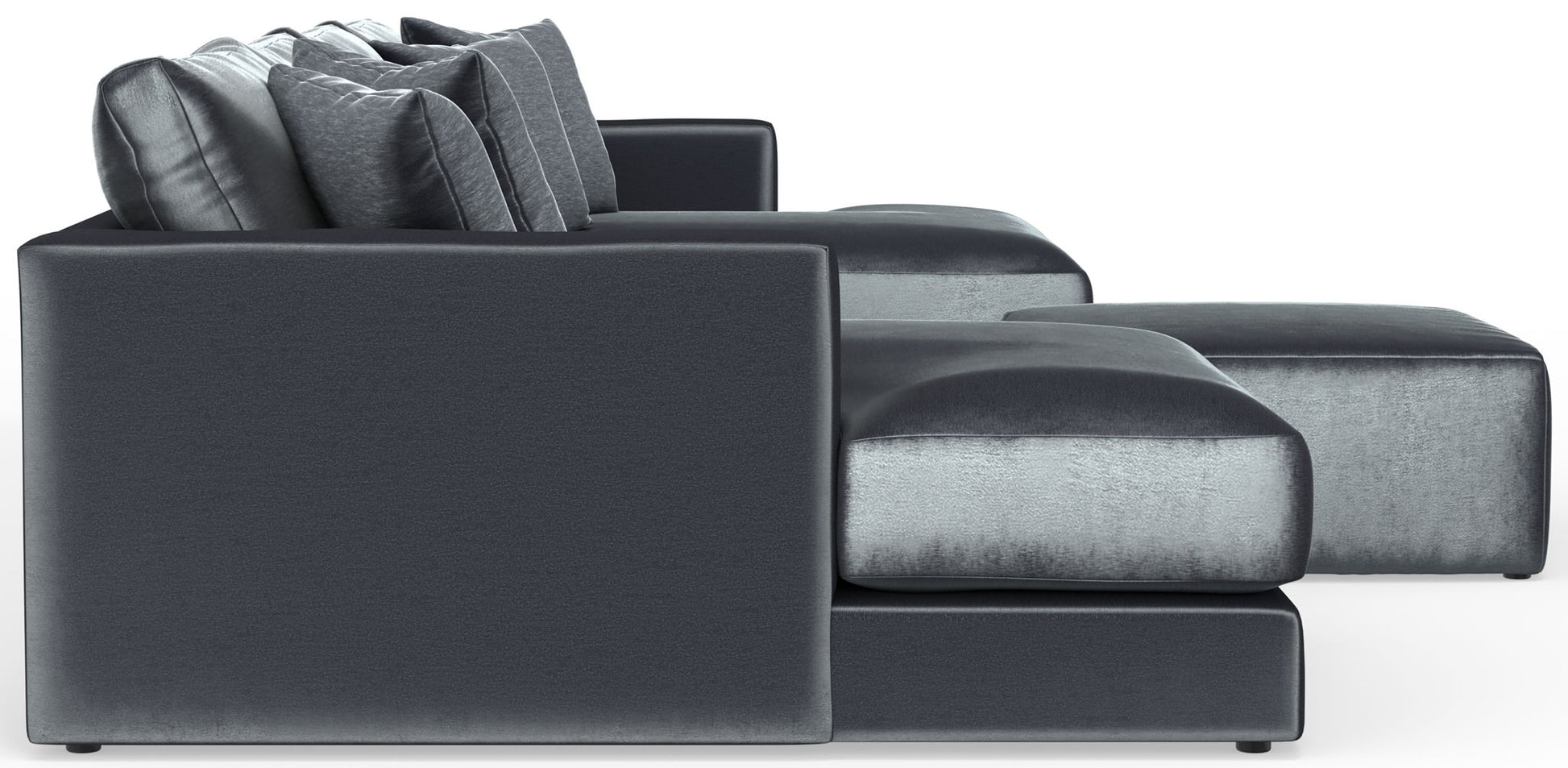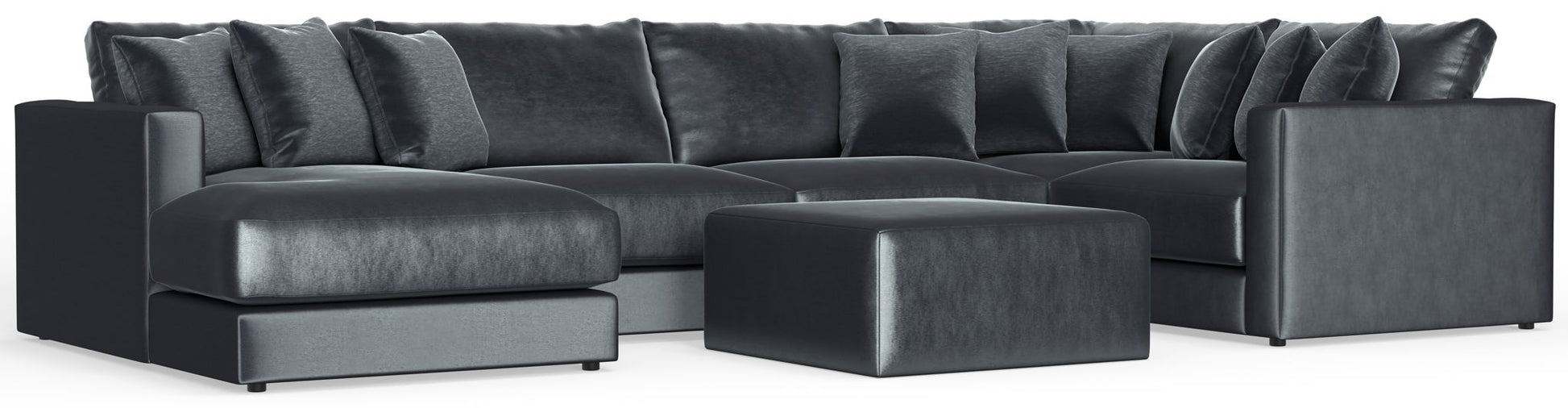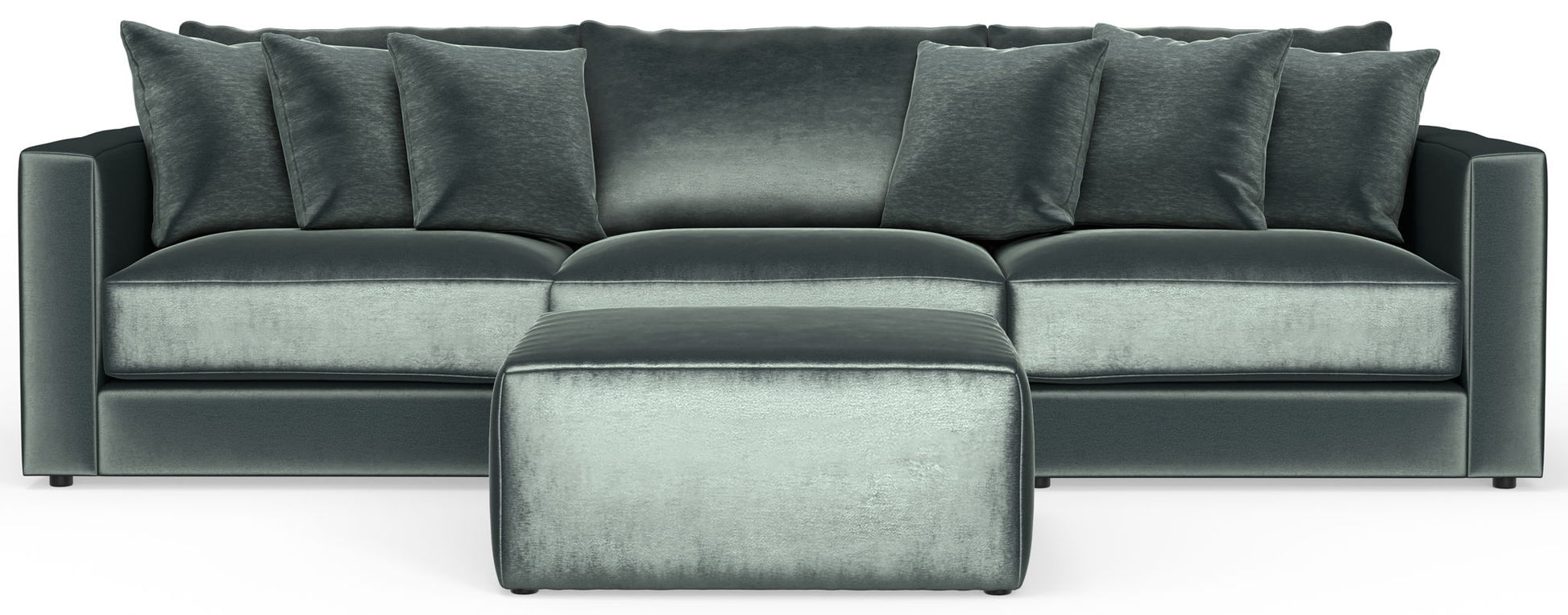 Remington is a track arm design Modular Sectional with loose backs and our Cuddler Cushion for ultimate comfort. Available in your choice of two luxurious velvet fabric colors: Pine or Slate.