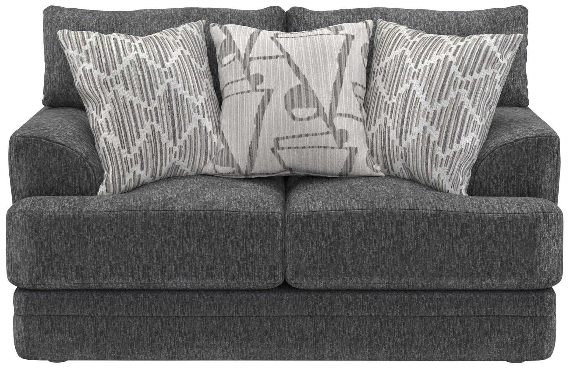 Tyson features the ultimate comfort of our Cuddler Cushion and features an interesting "shark fin" arm detail. With a variety of coordinating toss pillows, this stationary sofa group is available in your choice of two colors: Hazel or Slate.